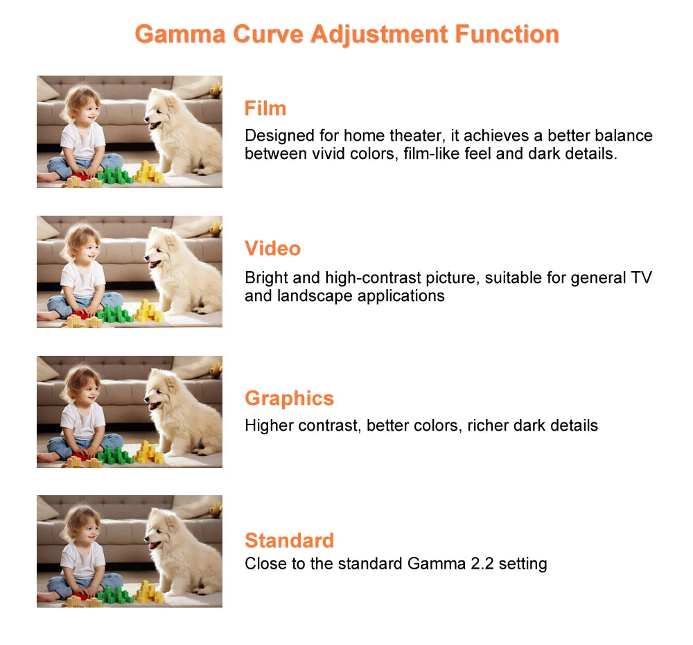 - Formats d’image : 16:9, 4:3, 21:9, 32:9, Auto, LBX