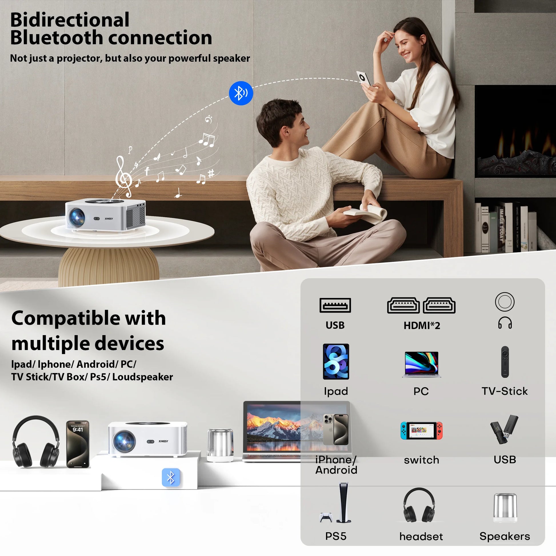 Découvrez le vidéoprojecteur XIWBSY 2025, une solution haut de gamme pensée pour le cinéma à domicile. Avec sa luminosité impressionnante de 30 000 lumens et sa résolution native Full HD, il projette des images nettes même en pleine lumière. Grâce à son autofocus rapide, sa correction automatique trapézoïdale et son système Android embarqué, vous profitez d’une configuration simple et d’un accès direct aux applications comme Netflix, YouTube ou Disney+. Doté du WiFi 6, du Bluetooth 5.1, d’un système de son Dolby 2x5W et compatible 4K/8K, ce projecteur portable est aussi performant qu'intuitif. Il s’adapte à tous vos besoins : films, présentations, jeux, streaming et plus encore.